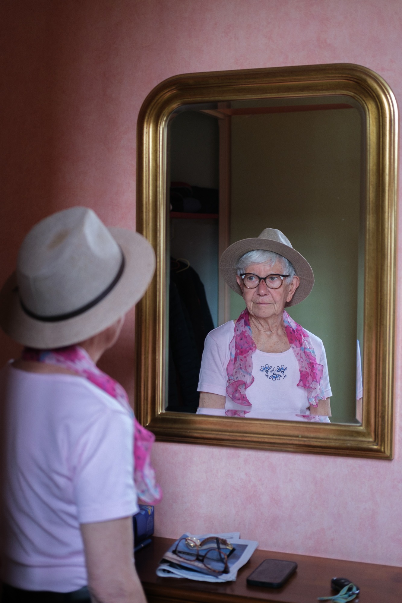 Je suis parti à la recherche de ces petites traces symboliques de la perte d’autonomie, au jardin, face à ses mots fléchés, dans la cuisine. Guetter ces instants éphémères de lucidité et de présence au monde qui l’entoure. Ne pas l’enfermer dans les frontières de son passé chaque jour plus flou, ni dans ce présent aspirant peu à peu son identité.