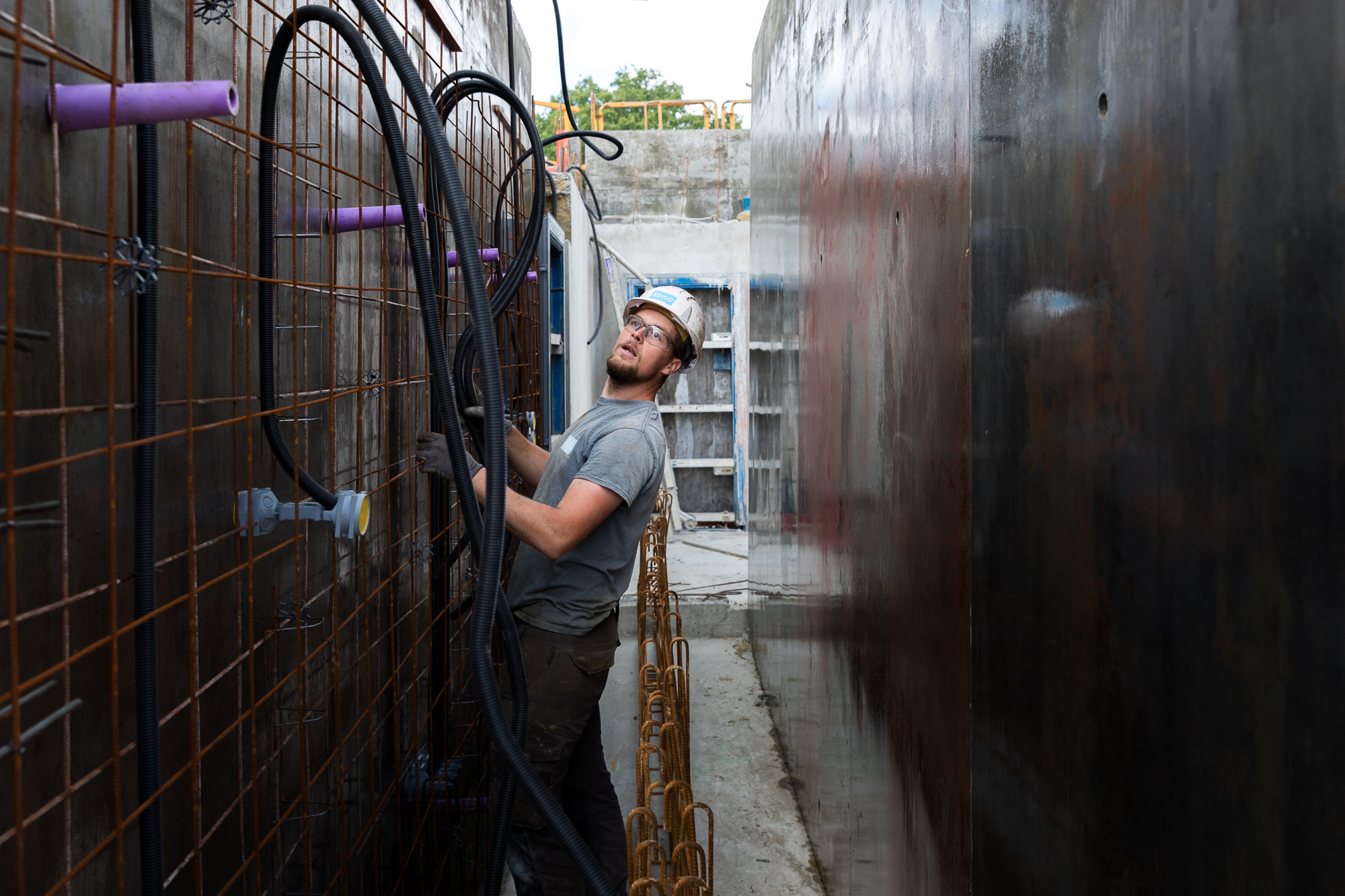 Chantier de construction et création d’un complexe sportif et nouveau gymnase dans le quartier Bellevue à Nantes.
