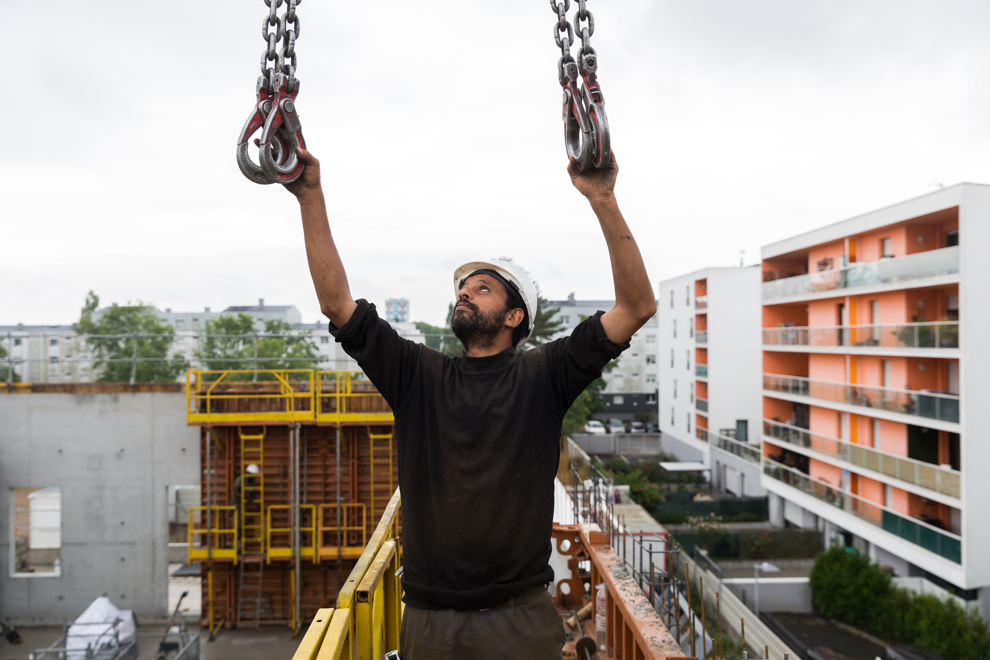 Chantier de construction et création d’un complexe sportif dans le quartier Bellevue à Nantes.