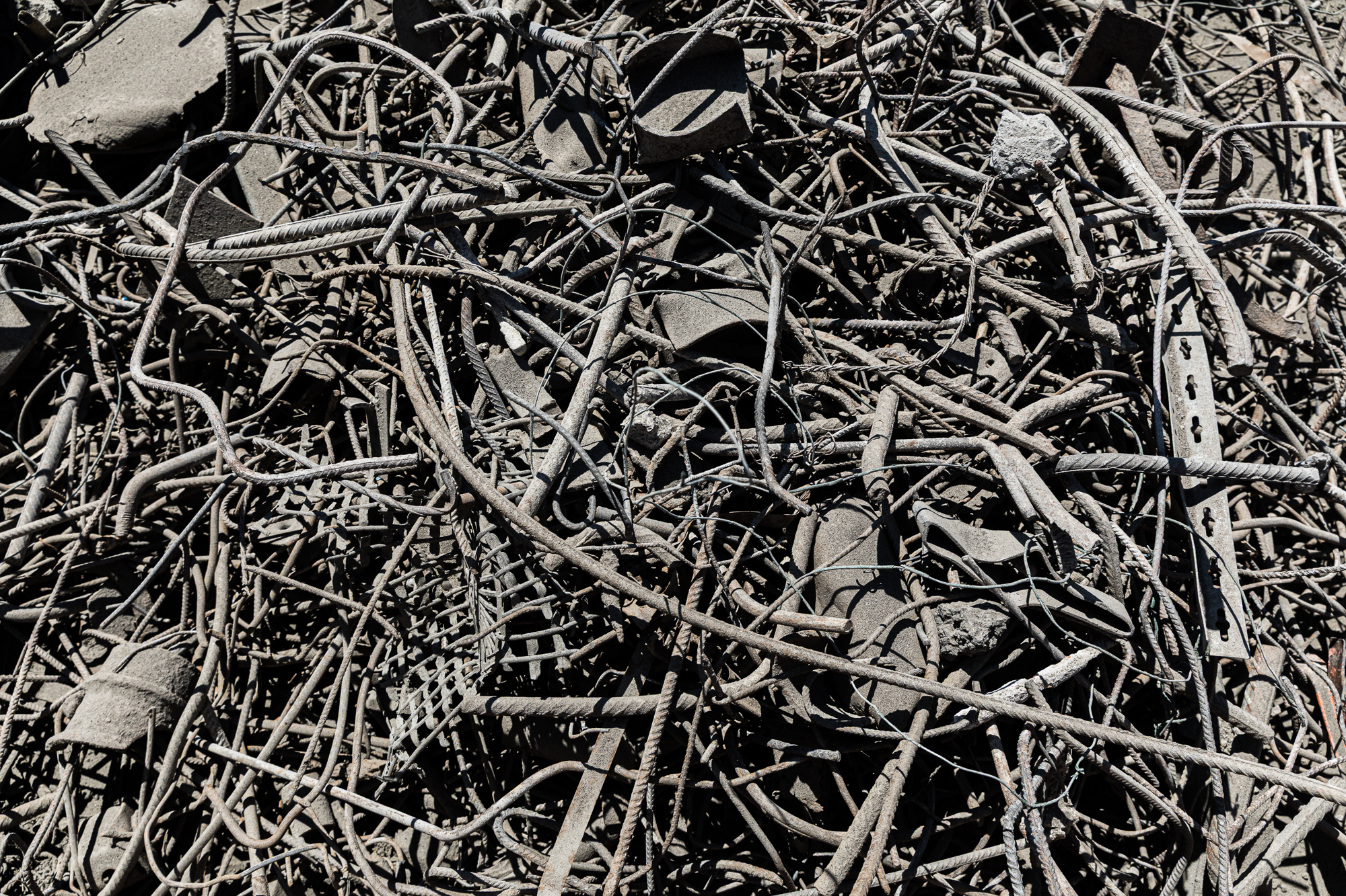 Ferrailles issues de travaux de concassage de matériaux de chantiers destinés au recyclage à Nantes.
